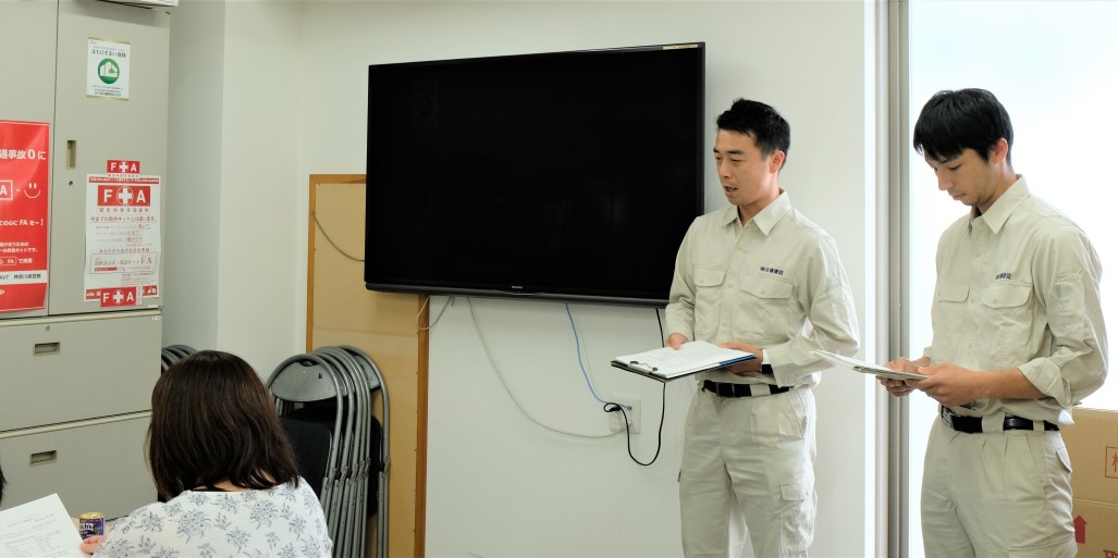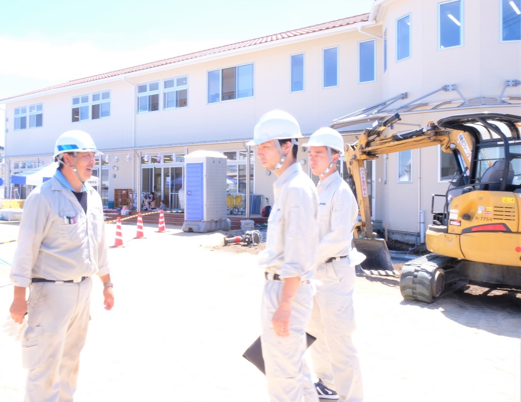 太陽の照りつける日差しが厳しい中、保育園や小学校の夏休み工事現場など市内数カ所の現場をまわりました。